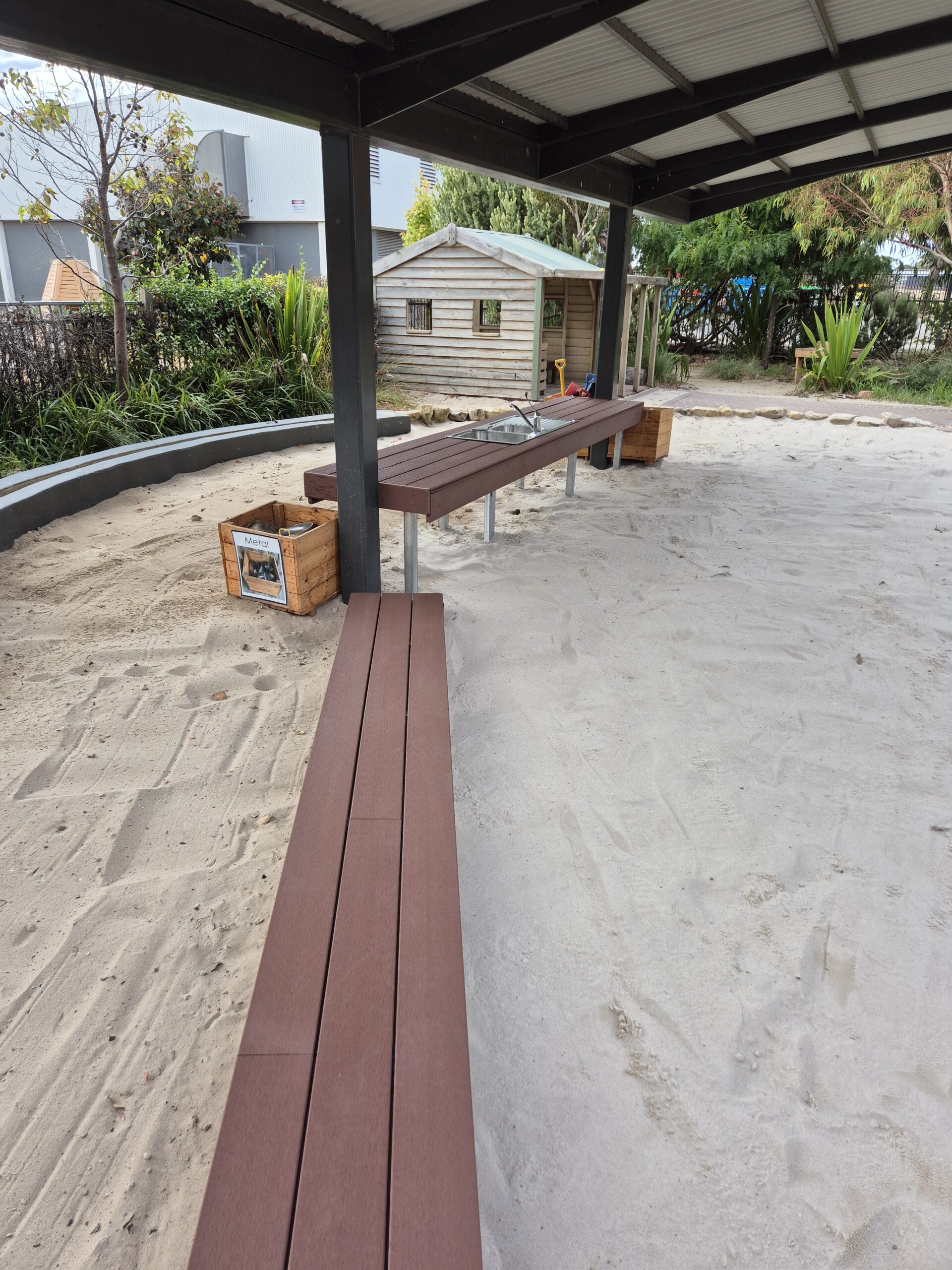 Recent improvements at South Port Preschool by the Urbanhills team provided a larger sandpit space, outdoor kitchen, bike path and graduated ramp to increase accessibility of the sandpit and provide a place for washing sandy feet.