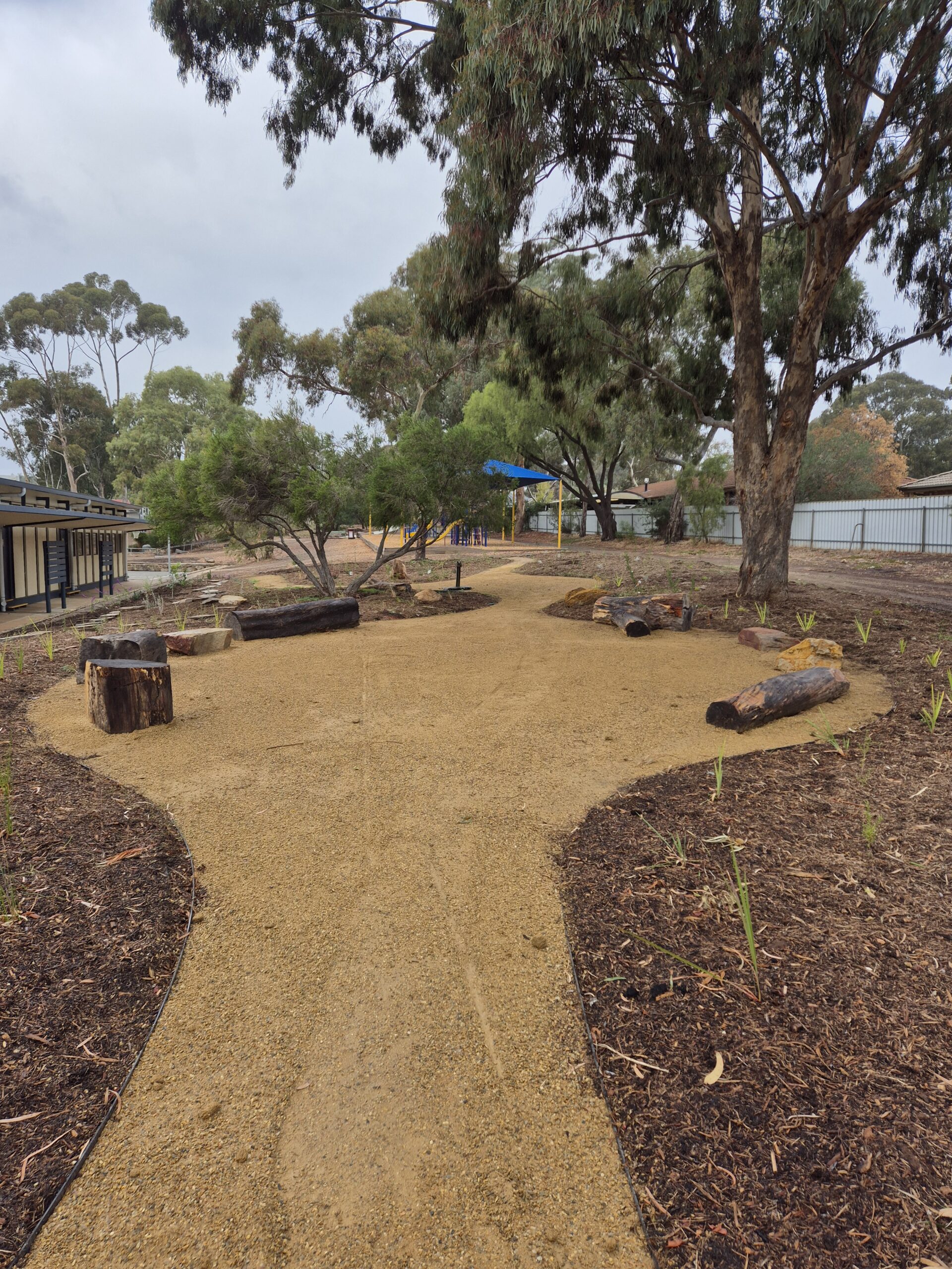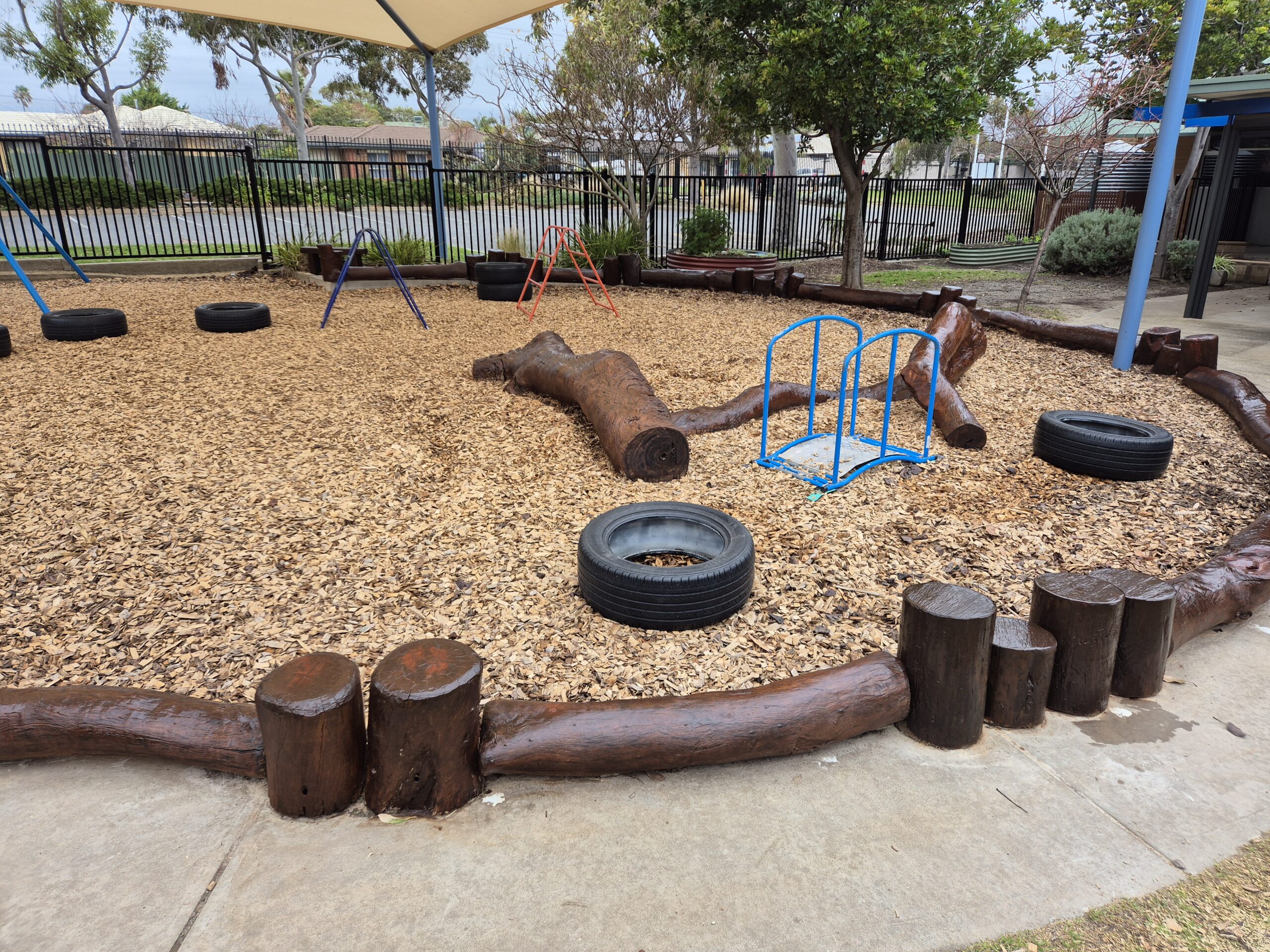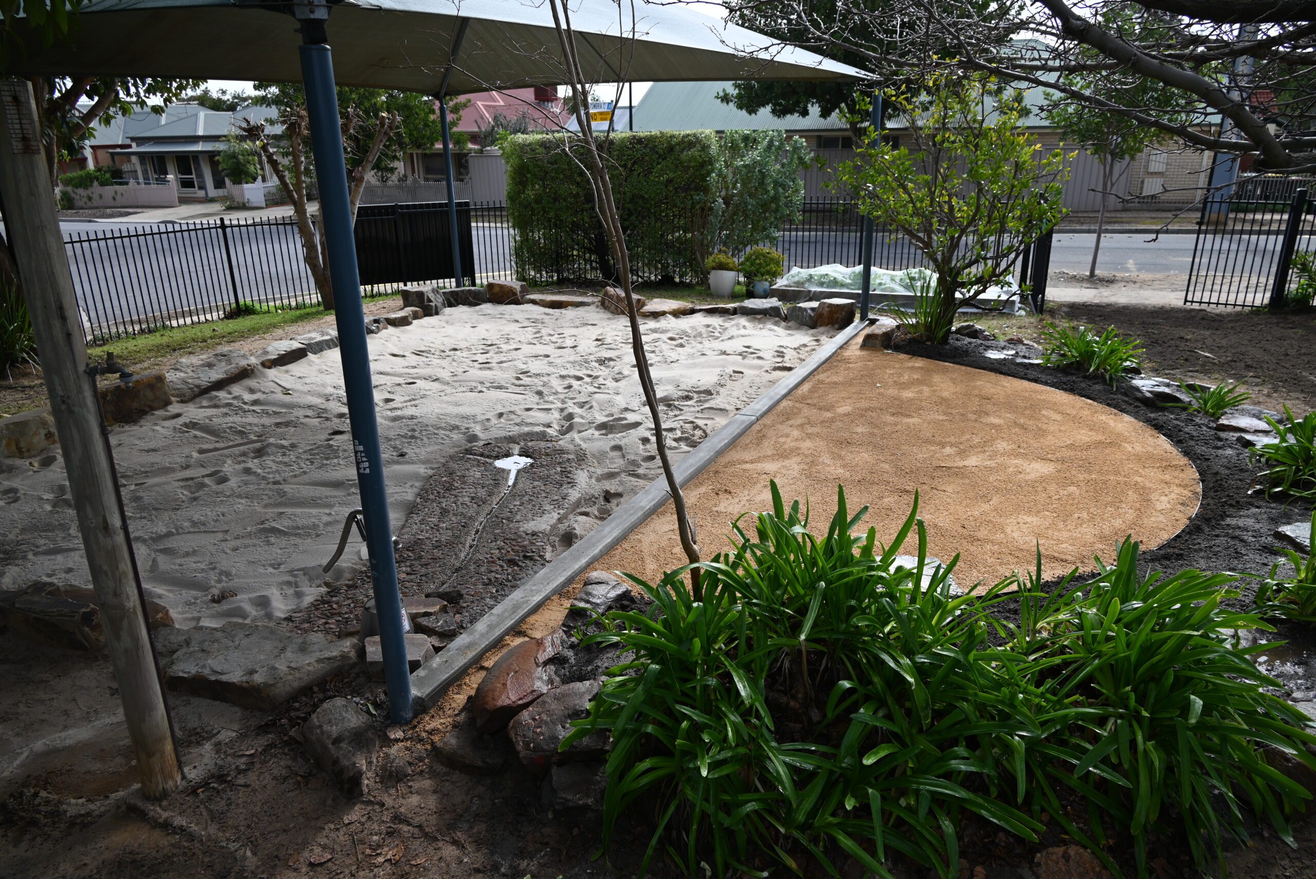 Similar improvements at Mitchell Park Kindergarten involved the removal of long-buried timber logs and replacement of degraded log edging with large rocks.