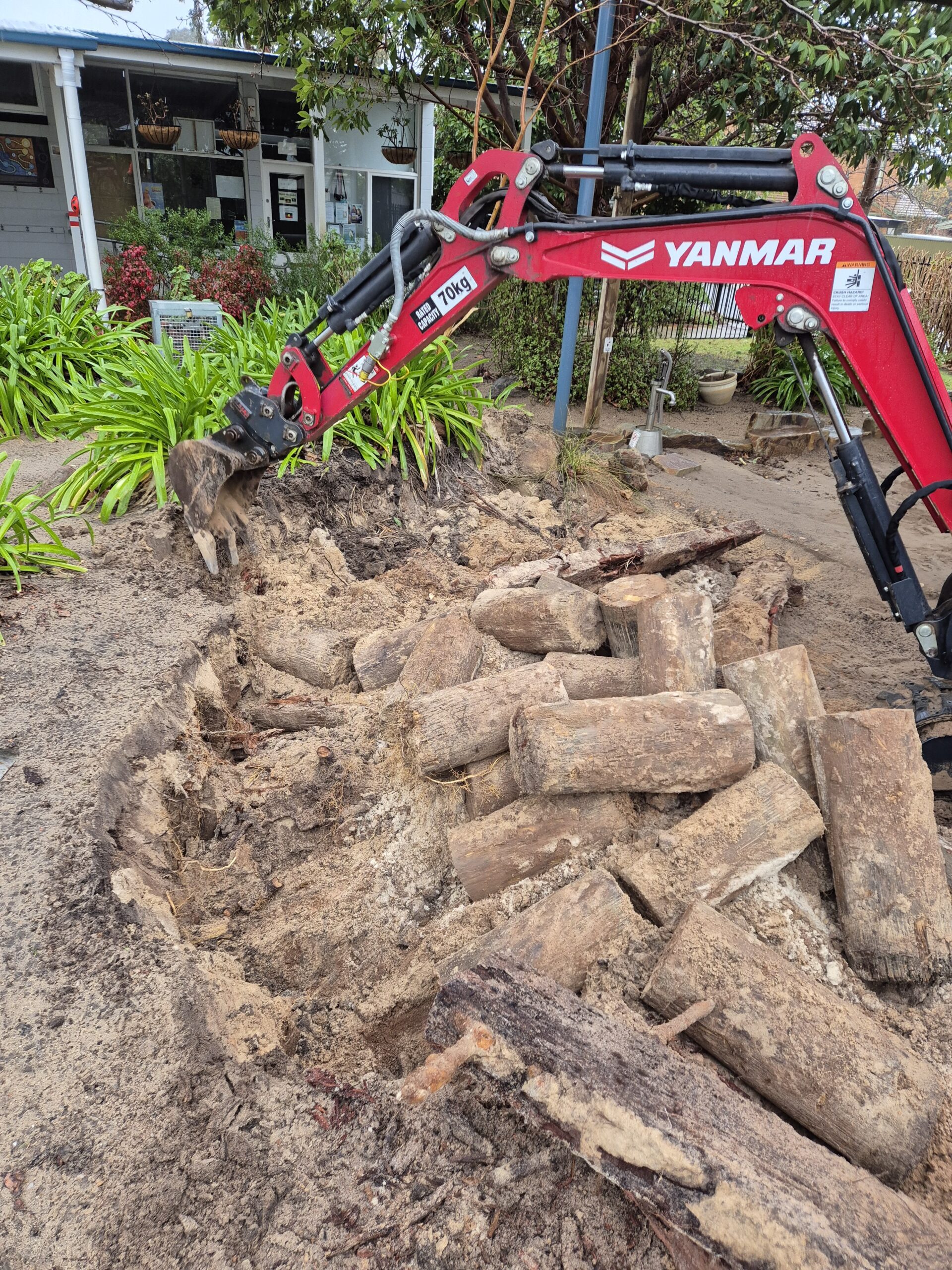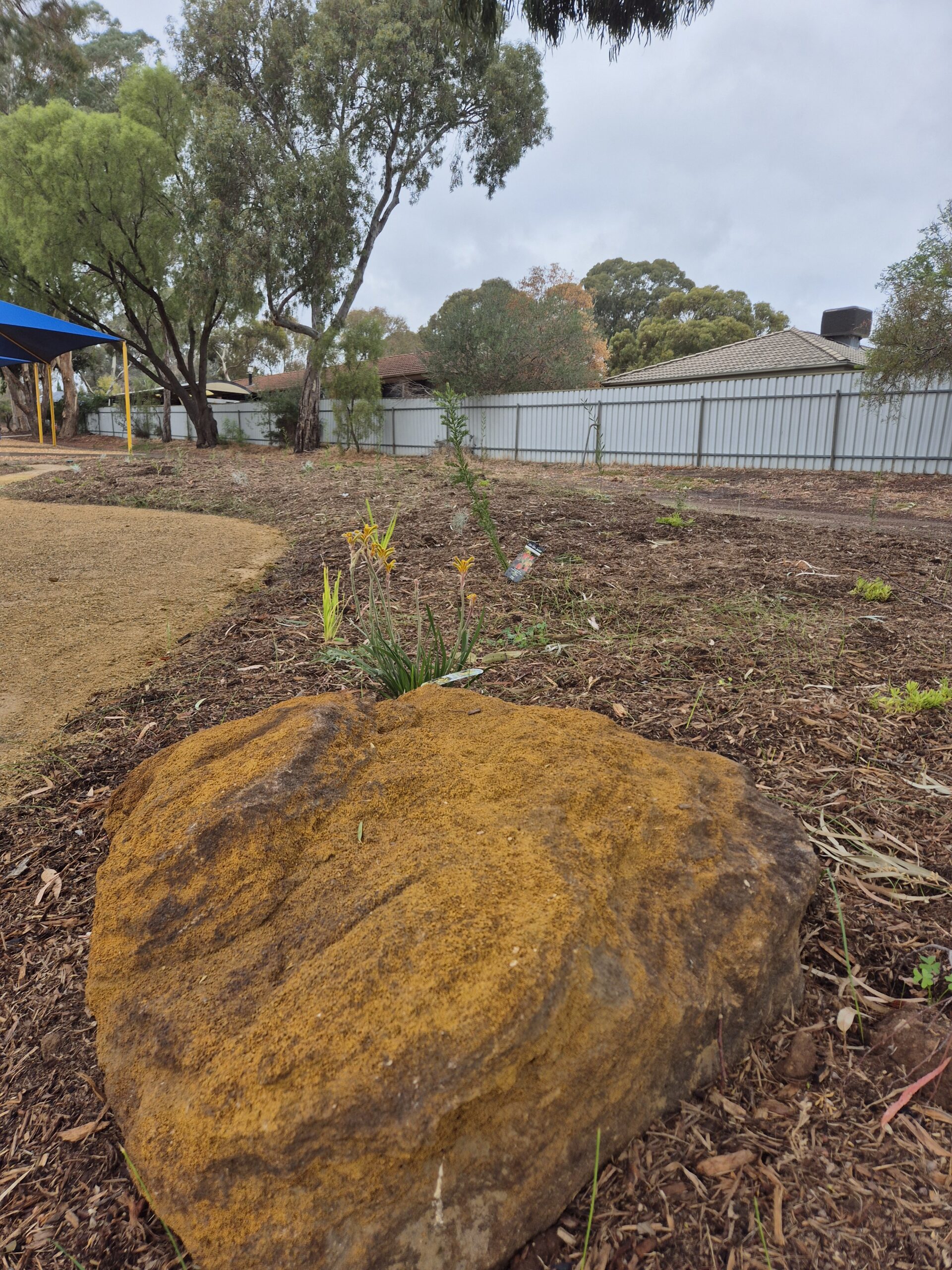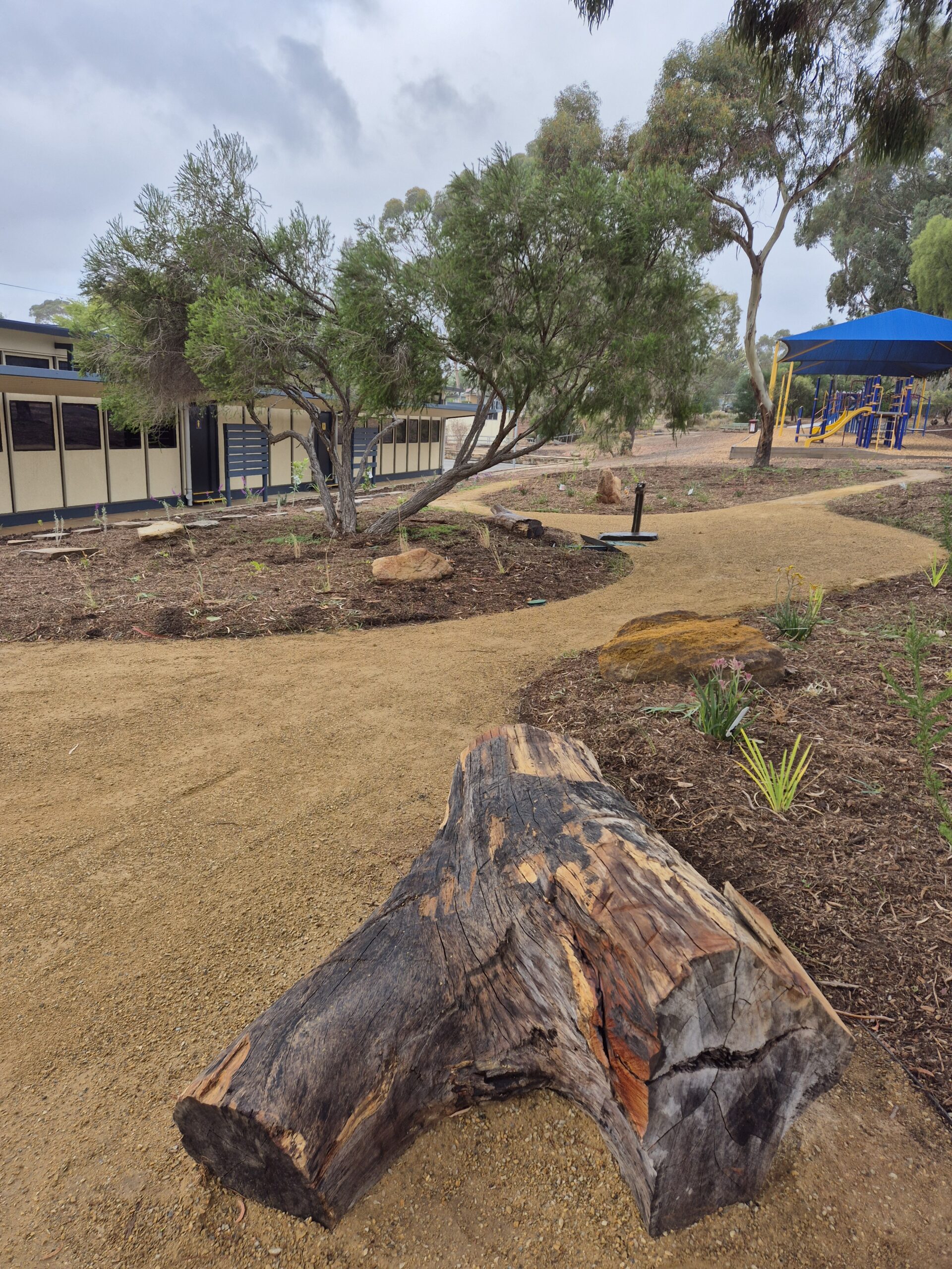 Similar improvements at Mitchell Park Kindergarten involved the removal of long-buried timber logs and replacement of degraded log edging with large rocks.